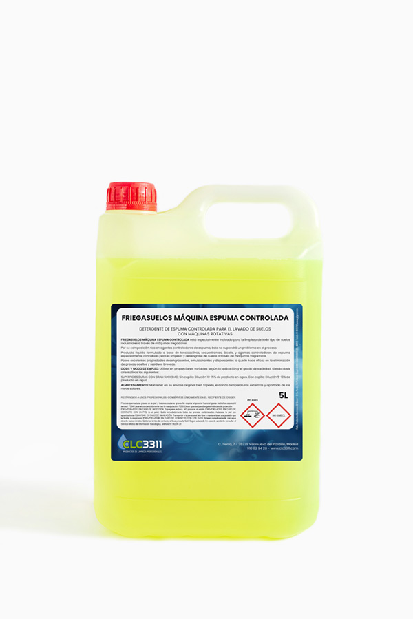 FRIEGASUELOS MÁQUINA ESPUMA CONTROLADA está especialmente indicado para la limpieza de todo tipo de suelos industriales a través de máquinas fregadoras.