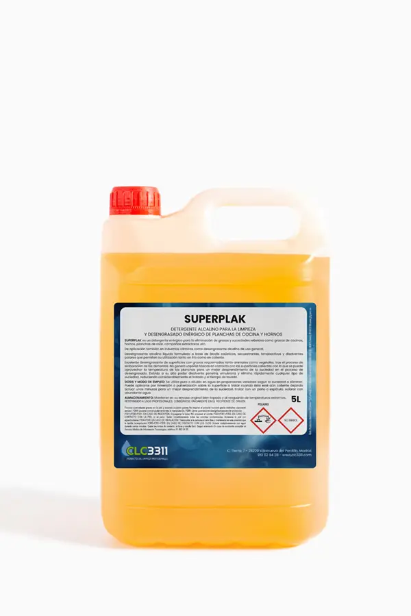 SUPERPLAK es un detergente enérgico para la eliminación de grasas y suciedades rebeldes como grasas de cocinas, hornos, planchas de asar, campanas extractoras ,etc.